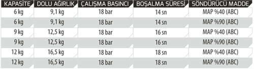 12 kg kuru kimyevi toz içeren, en yaygın kullanılan, çok amaçlı söndürme cihazı.