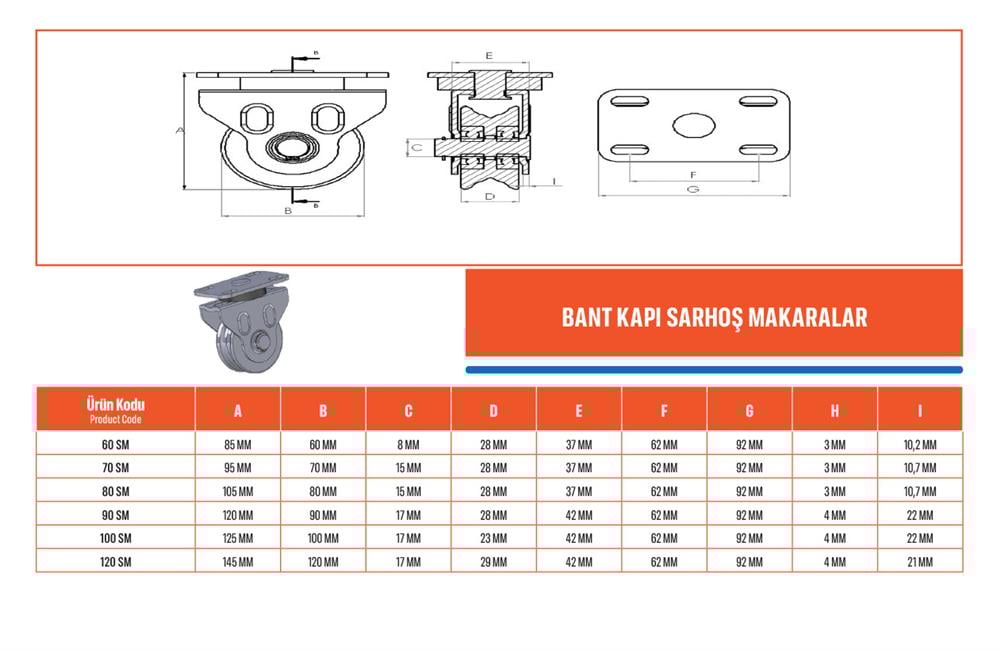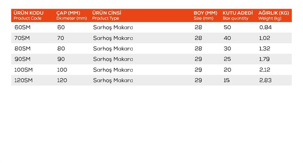 360 derece dönebilen tekerlek yapısıyla 100 mm çapında dönen makara.