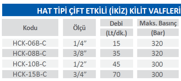HAT TİPİ ÇİFT ETKİLİ (İKİZ) KİLİT VALFLERİ