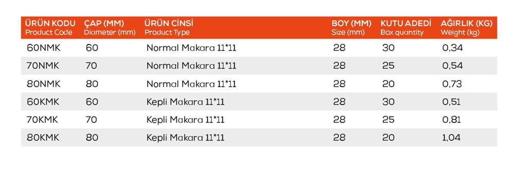 11x11 mm profiller için tasarlanmış, 60 mm normal makara.