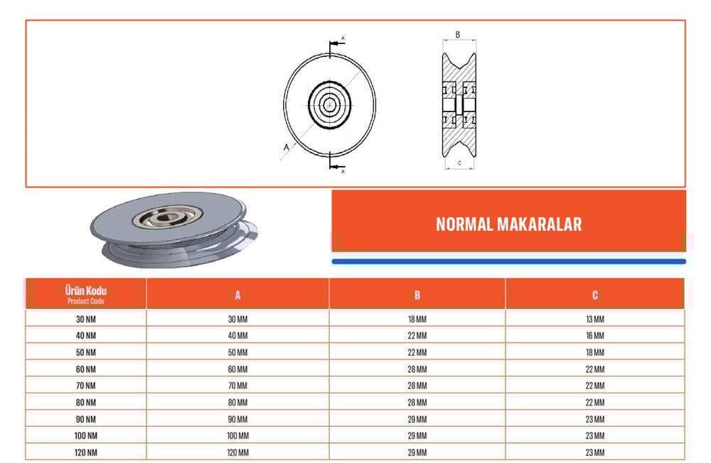Çok yönlü kullanım için ideal, 100 mm çapında standart makara.