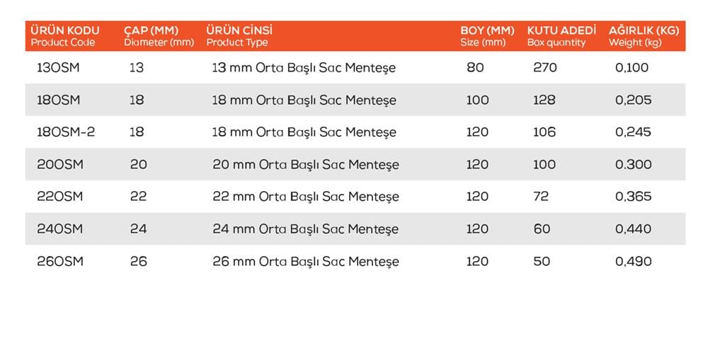 Orta baş sac yapısıyla ekstra sağlamlık sağlayan 18 mm menteşemiz, kapı kasası ve kanadı arasında güçlü bir bağlantı kurar. Kaynak uygulamaları için uygundur.